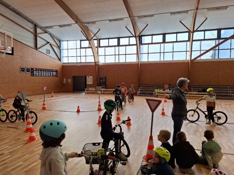 Le mardi 9 avril, les élèves de CE1 CE2 ont suivi une séance de prévention routière en vélo sur piste à la salle de sport. Ils ont ainsi pu s’essayer à pratiquer le vélo comme s’ils étaient sur la route :
