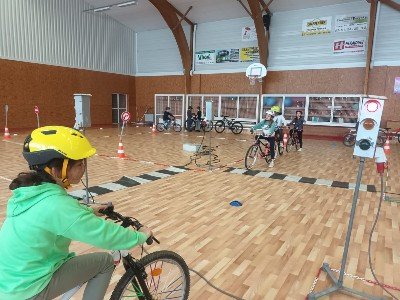 Le mardi 9 avril, les élèves de CE1 CE2 ont suivi une séance de prévention routière en vélo sur piste à la salle de sport. Ils ont ainsi pu s’essayer à pratiquer le vélo comme s’ils étaient sur la route :