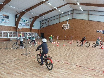 Le mardi 9 avril, les élèves de CE1 CE2 ont suivi une séance de prévention routière en vélo sur piste à la salle de sport. Ils ont ainsi pu s’essayer à pratiquer le vélo comme s’ils étaient sur la route :