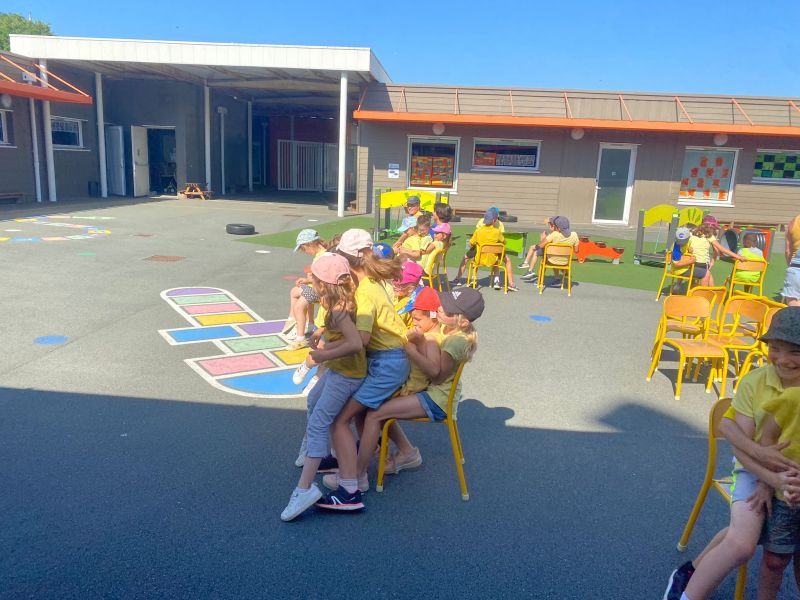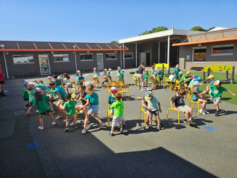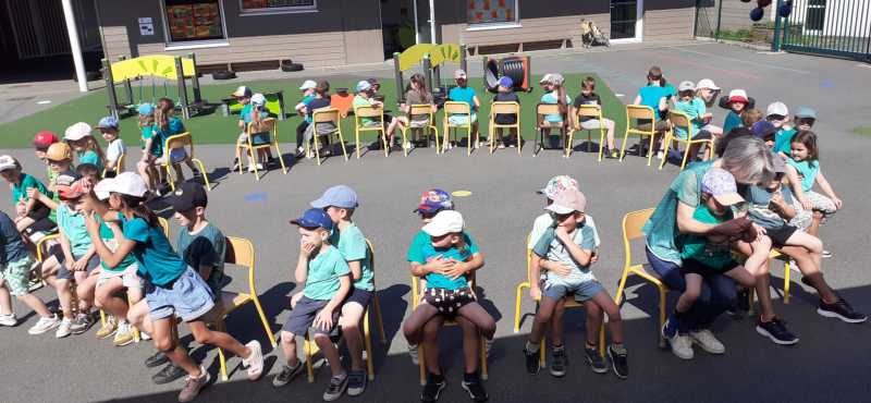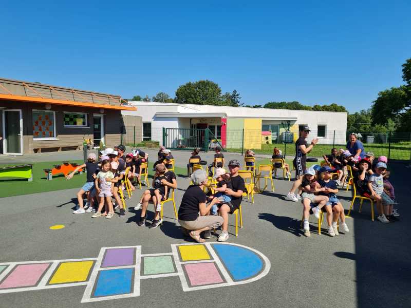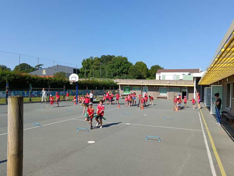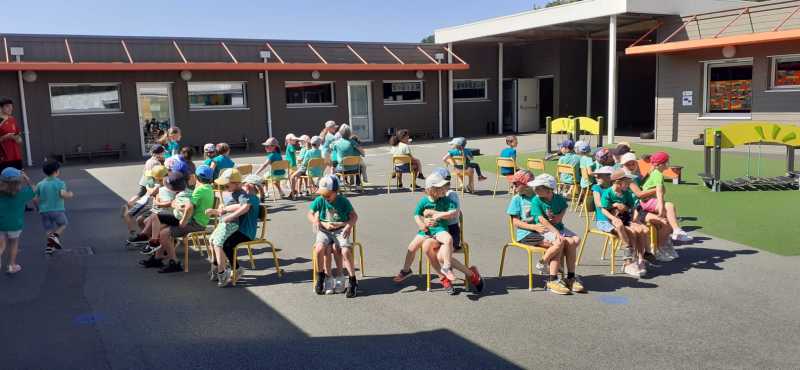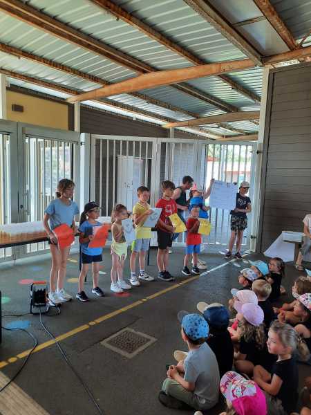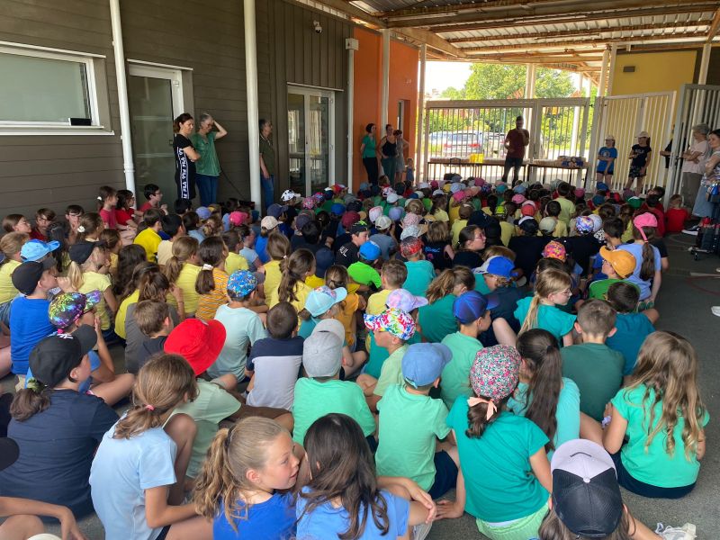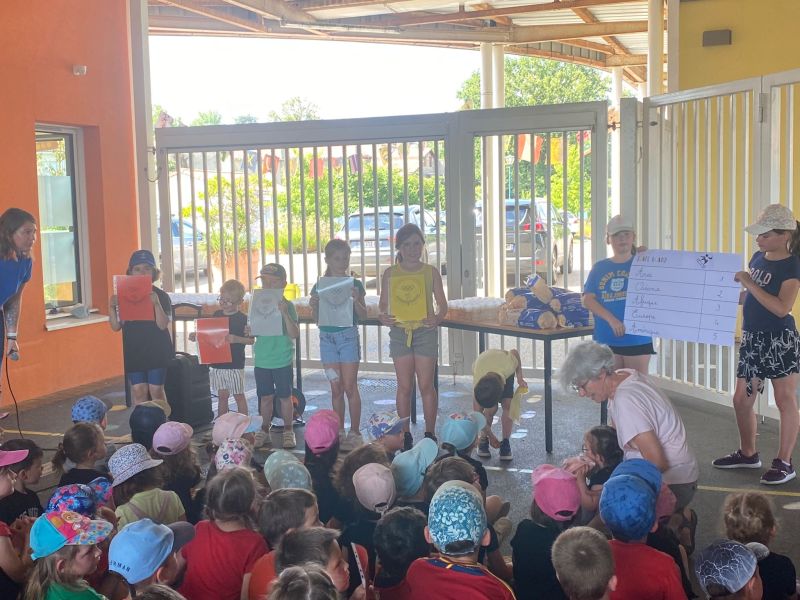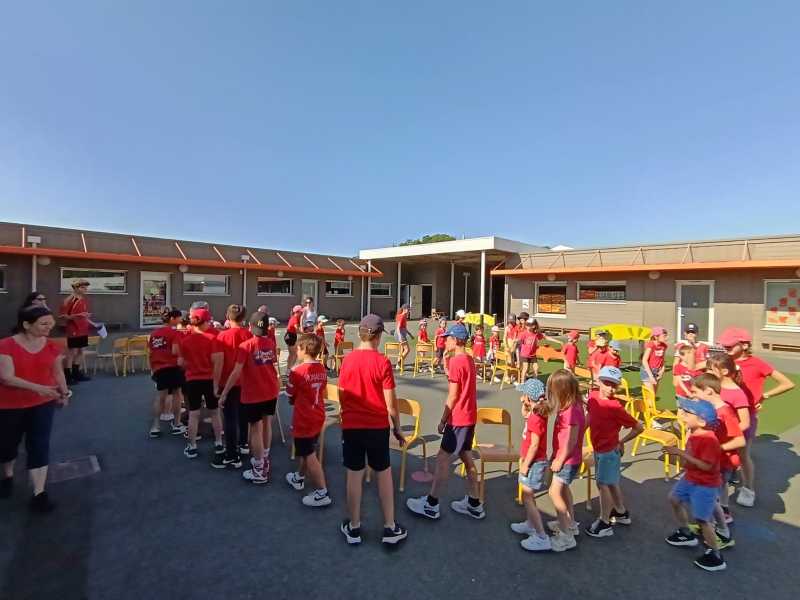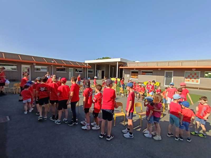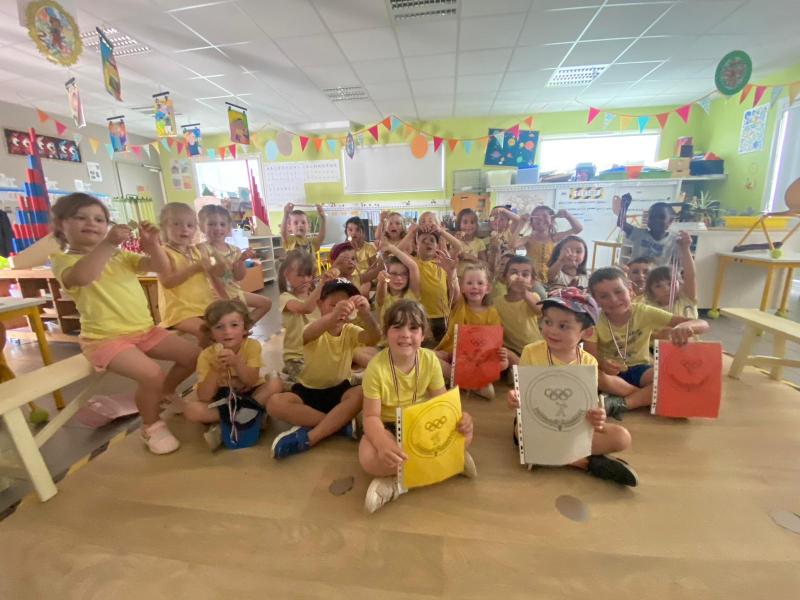 En fin d’après-midi, un nouveau rassemblement a eu lieu pour la présentation des résultats avec remise des médailles. Un goûter a été offert à l’ensemble des élèves par l’APEL. Au retour en classe, les élèves ont reçu une médaille pour les maternelles (offert par la communauté de Montaigu) ou une pièce de 2€ édition jeux olympiques (offert par le ministère).