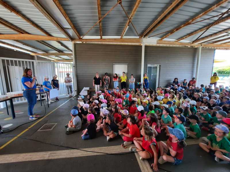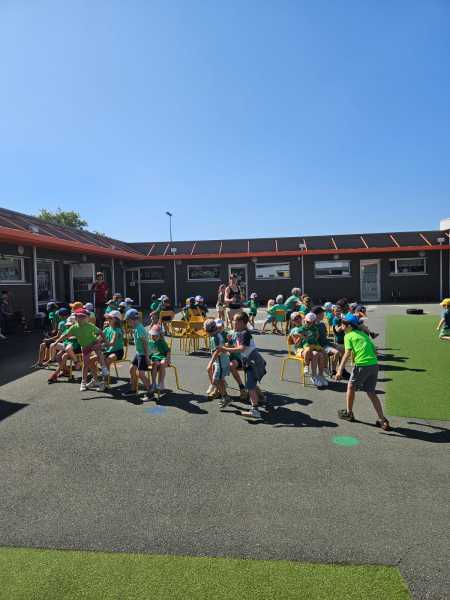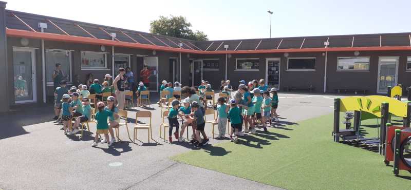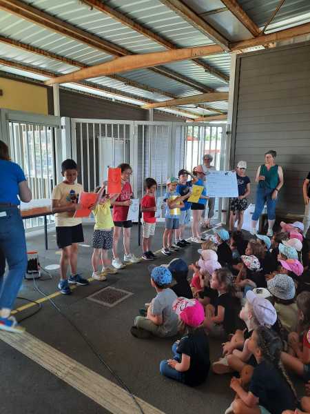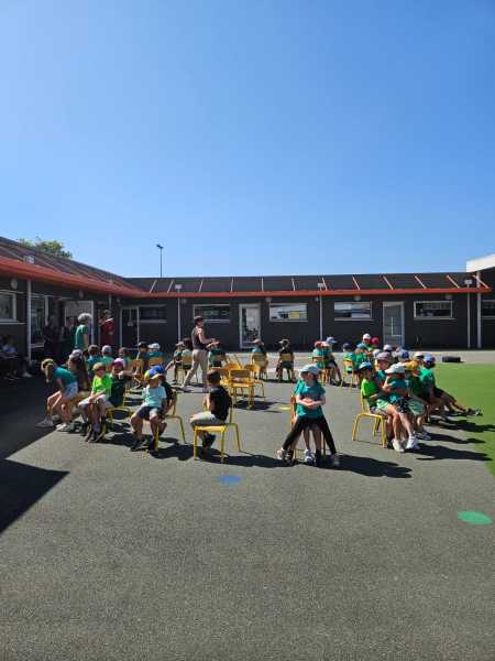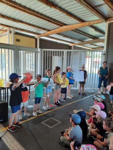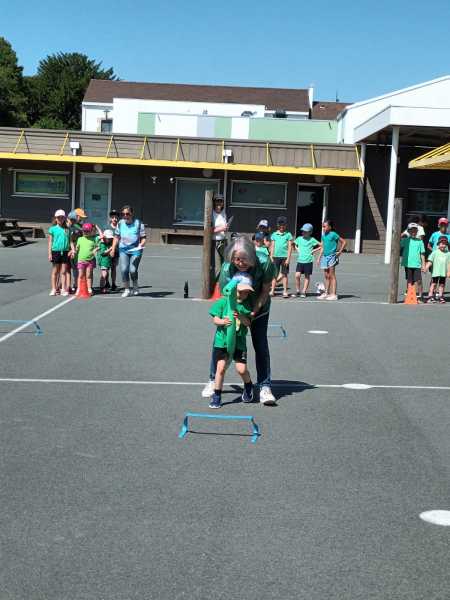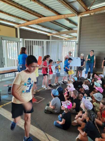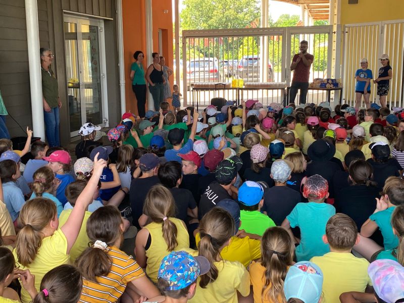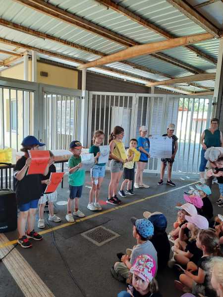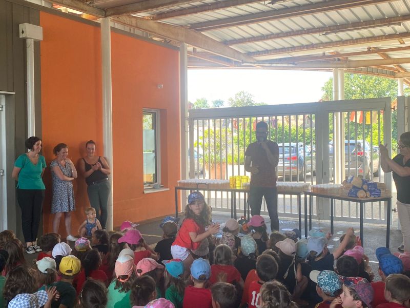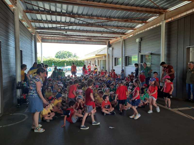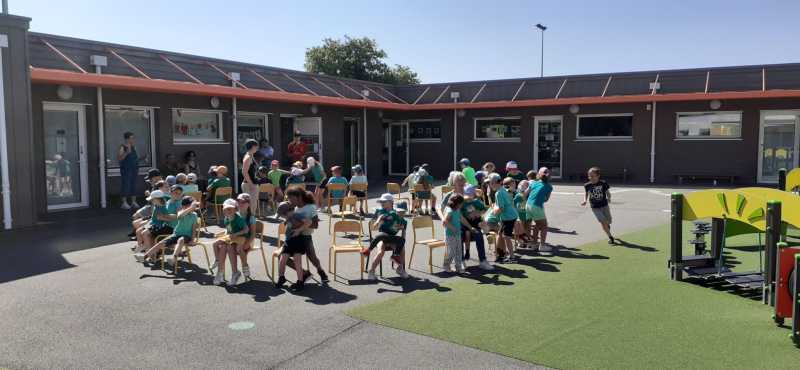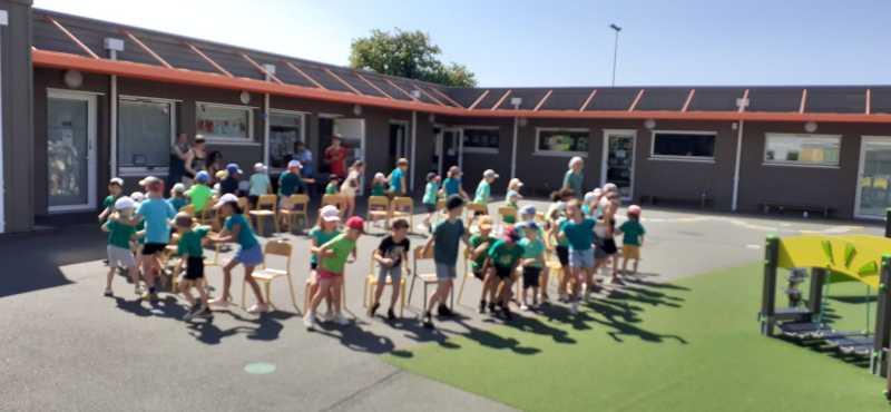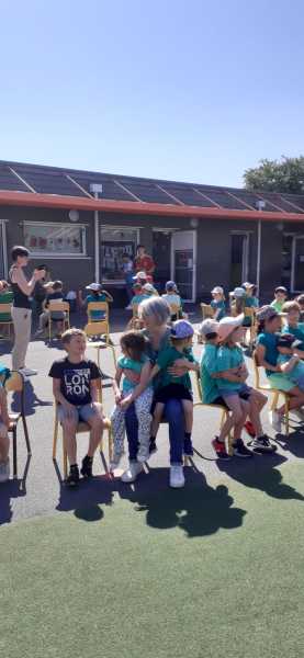 En fin d’après-midi, un nouveau rassemblement a eu lieu pour la présentation des résultats avec remise des médailles. Un goûter a été offert à l’ensemble des élèves par l’APEL. Au retour en classe, les élèves ont reçu une médaille pour les maternelles (offert par la communauté de Montaigu) ou une pièce de 2€ édition jeux olympiques (offert par le ministère).