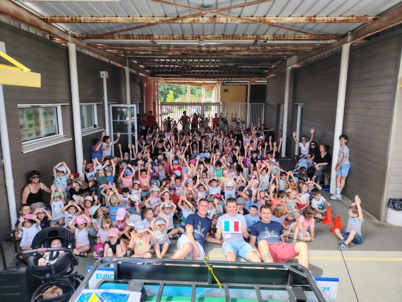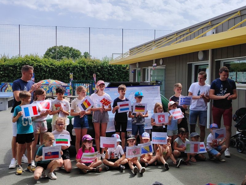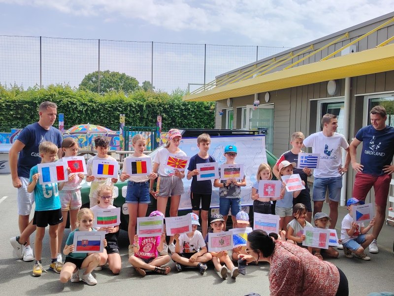 Les enfants leur ont lancé un défi : se prendre en photo dans chaque pays traversé avec un drapeau du pays que les enfants ont colorié pour l’occasion.