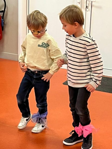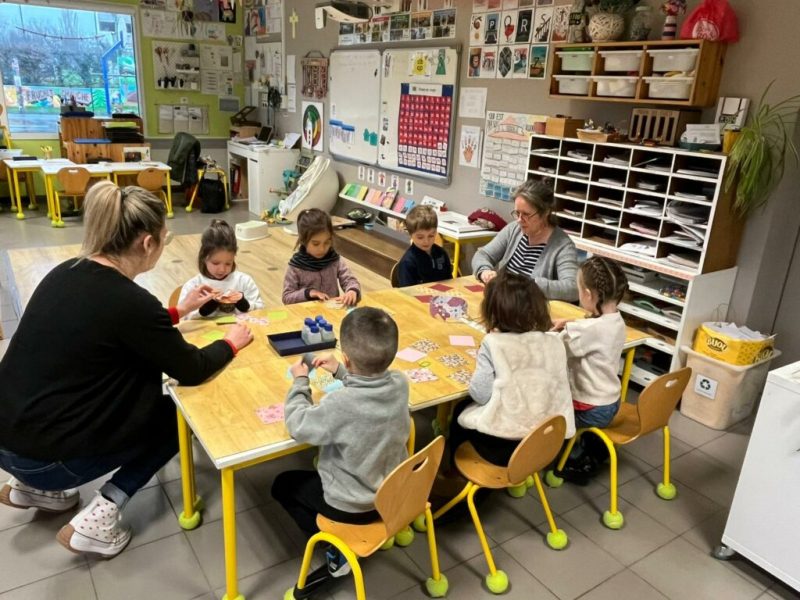 Vendredi 24 janvier, les classes de Cécile et Marie (MS/GS) se sont retrouvées pour participer à quatre ateliers sur le thème de la galette.