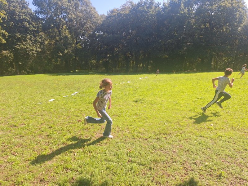 Ainsi, nous avons appliqué ce que nous avons appris en géométrie, sur la symétrie, avec les éléments de la nature. Aussi, nous avons travaillé nos mots de dictée en course-relais ou bien encore ordonner des nombres ! Cela nous permet de réinvestir nos apprentissages sous une autre forme et de les consolider tout en s’amusant.