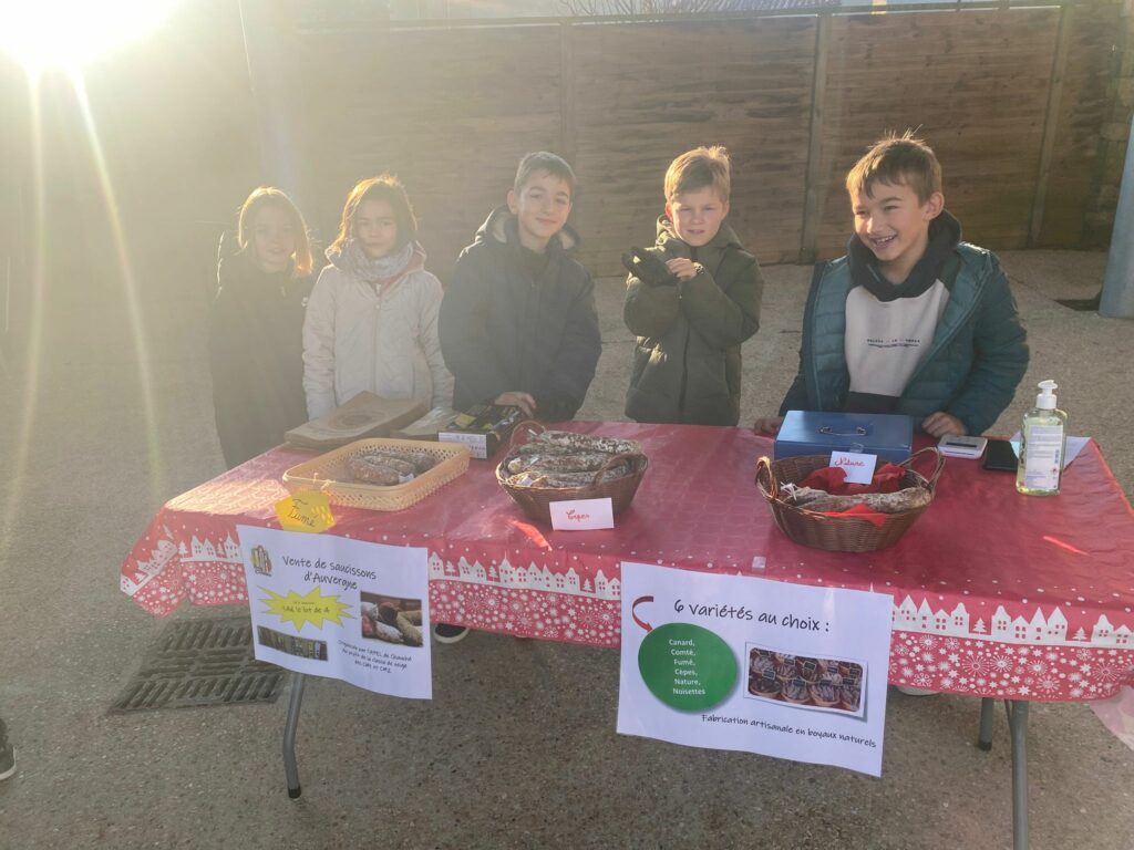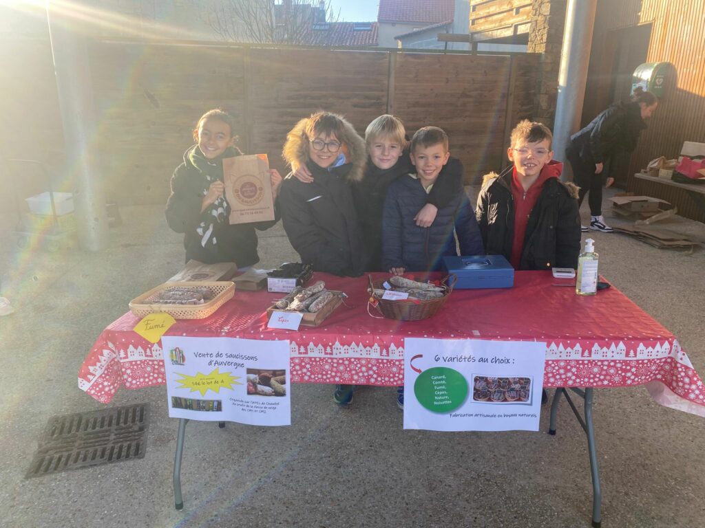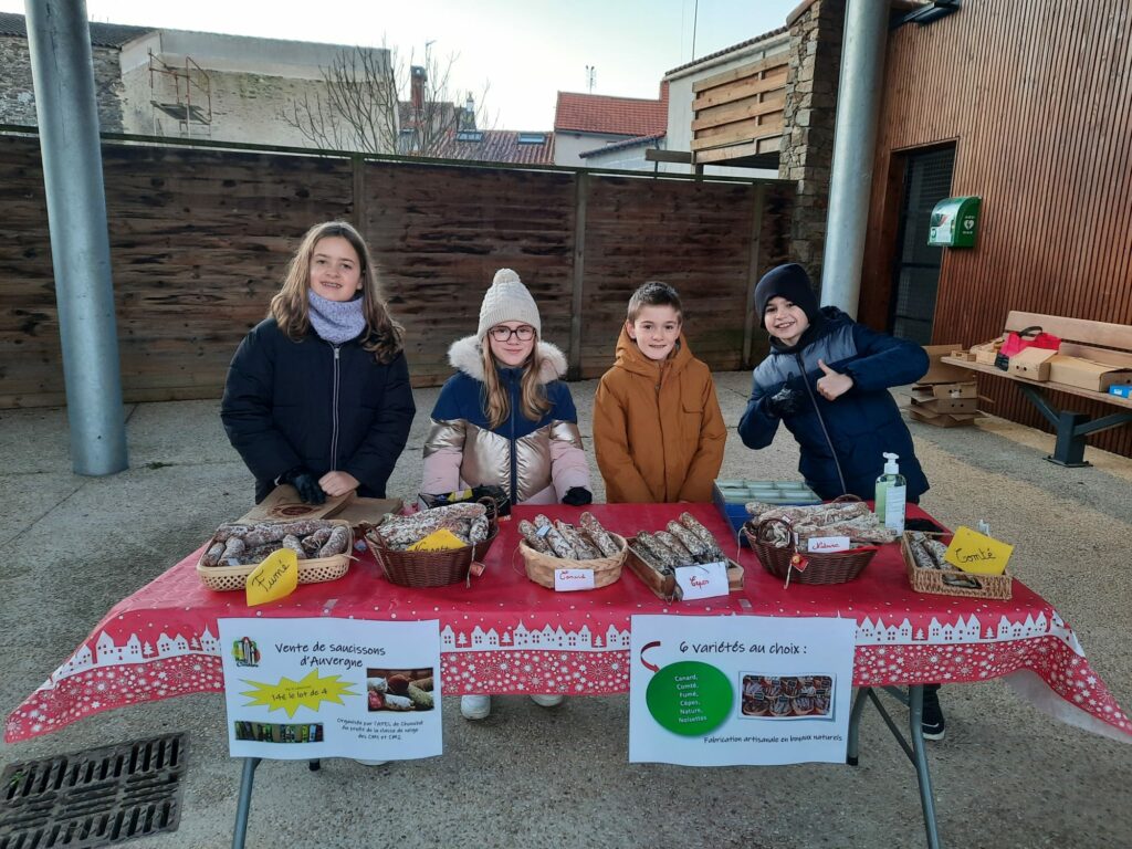 Par équipe de 5-6 élèves, ils se sont relayés pour tenir le stand de vente de saucissons installé près de la boulangerie de Chauché.