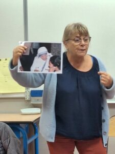 En cette fin d’année, Marianne DOUET (la mamie de Vianney, Louis et Martin BOULANGER) est venue témoigner auprès des CE et CM de sa vie auprès de Mère Teresa, dans le cadre de la catéchèse et de la culture chrétienne.