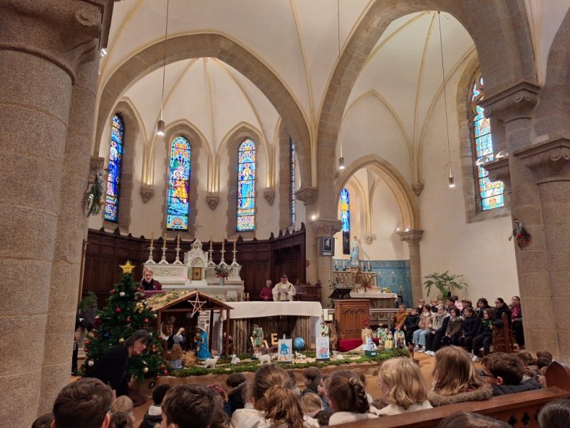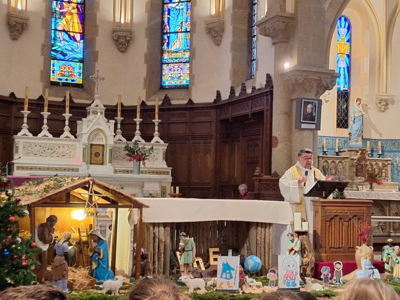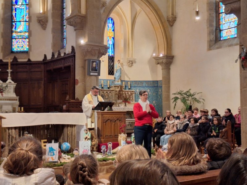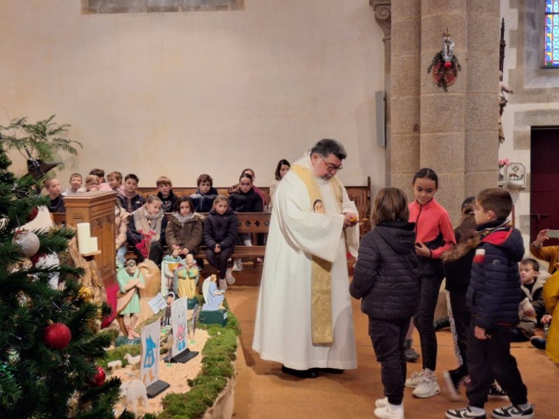 Le Père Rafaël a aidé les enfants à percevoir le sens de cette histoire et rappelé l’importance de la bienveillance et du partage… Chaque classe est repartie avec une étoile scintillante à accrocher au dessus de la crèche pour se rappeler de ce message fort.