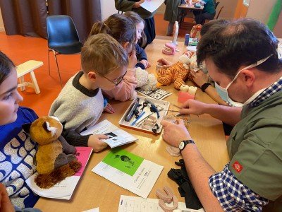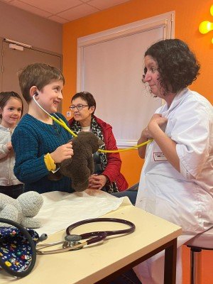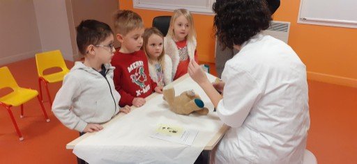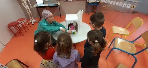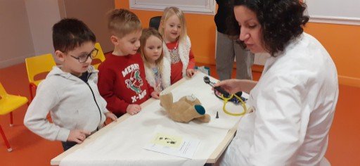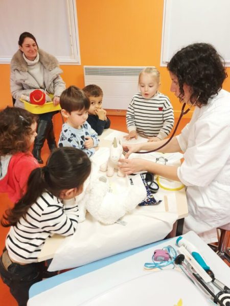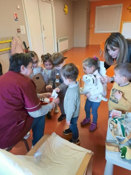 Les élèves ont apporté une peluche à l’école, lui ont choisi une pathologie puis ont complété son carnet de santé en amont, en classe. Répartis en petits groupes, ils se sont ensuite présentés aux différents pôles organisés pour faire soigner leur petit protégé !