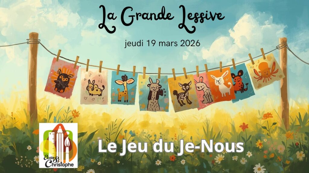 C’est pourquoi, tous les élèves de la PS au CM2 vont étendre sur un fil à linge leur production artistique réalisée sur le thème “Le Jeu du Je-Nous”.